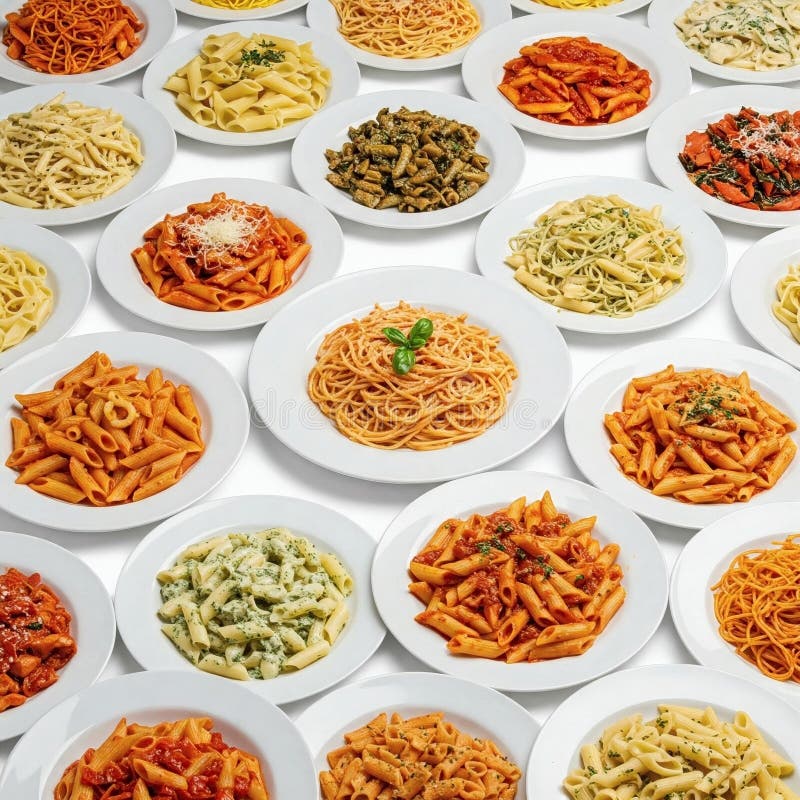 Variety of Types and Shapes of Italian Pasta on a White Background