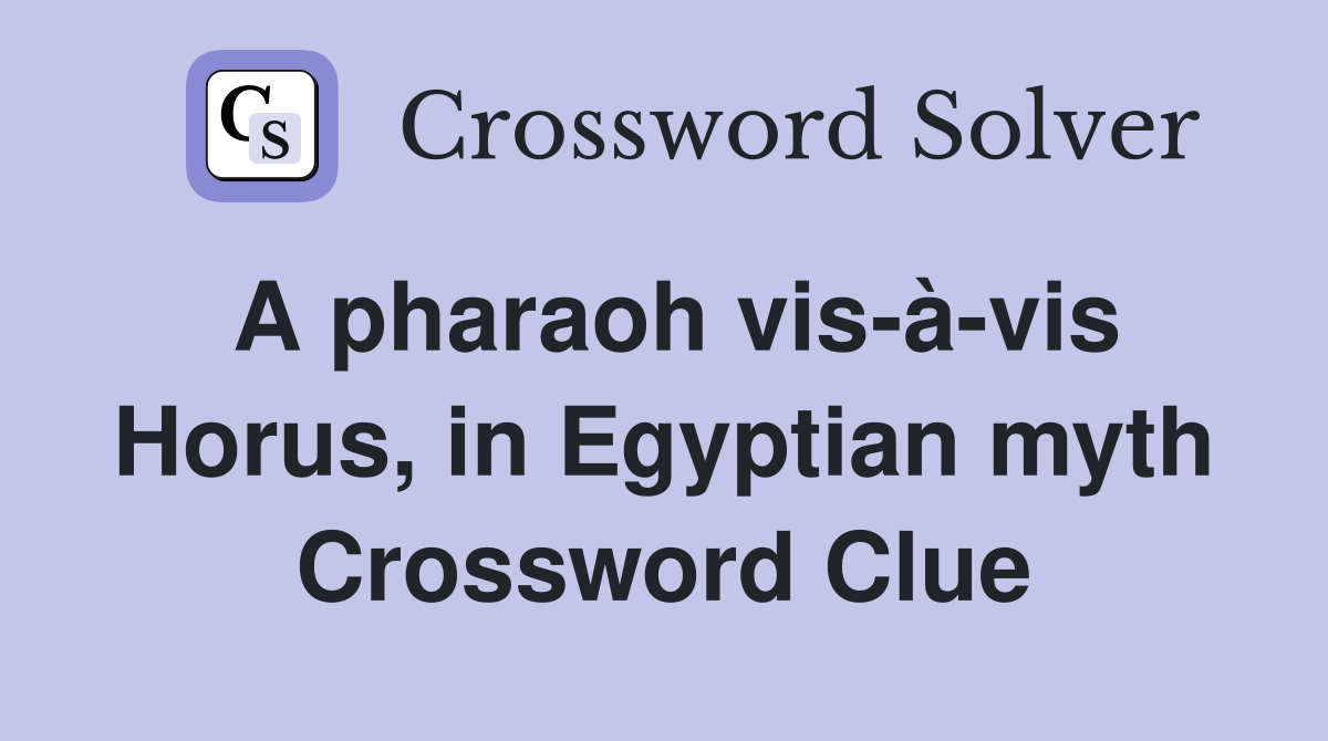 A pharaoh vis à vis Horus in Egyptian myth Crossword Clue Answers