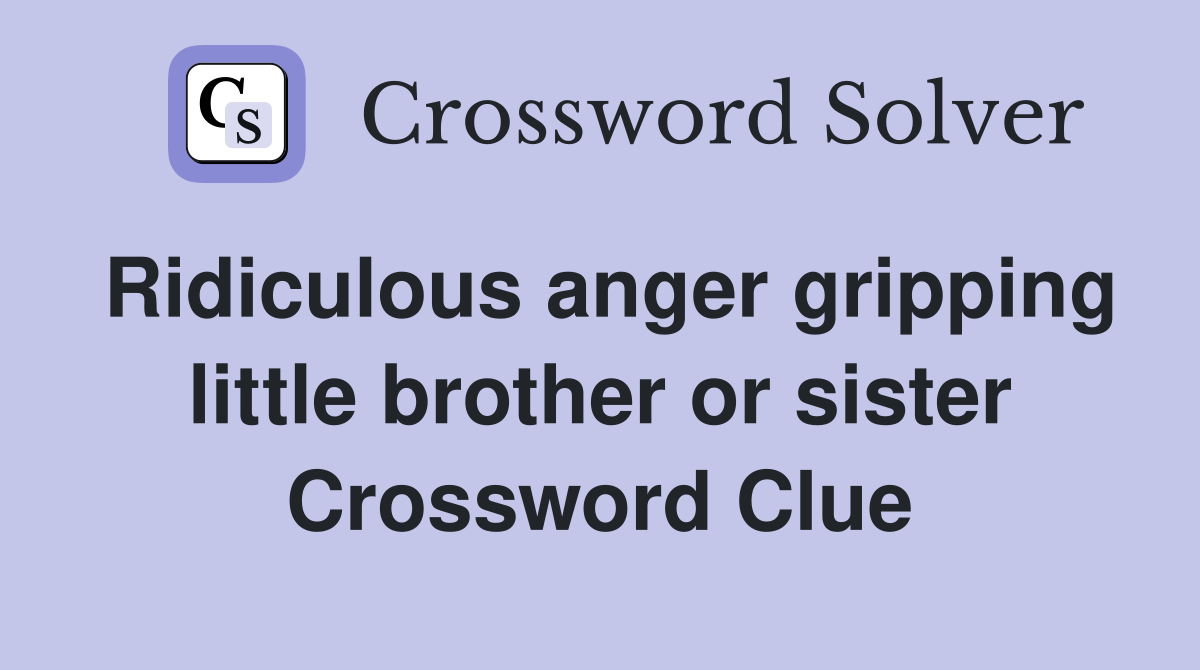 Ridiculous anger gripping little brother or sister Crossword Clue