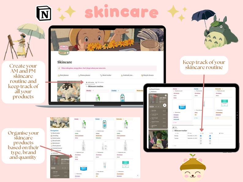 Skincare Tracker Notion Template Notion Skincare Planner Skincare