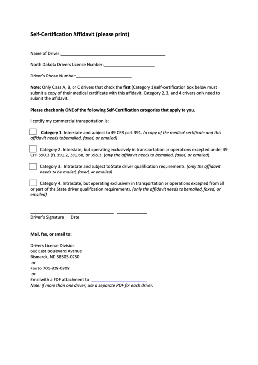 Self Certification Affidavit Template North Dakota Drivers License