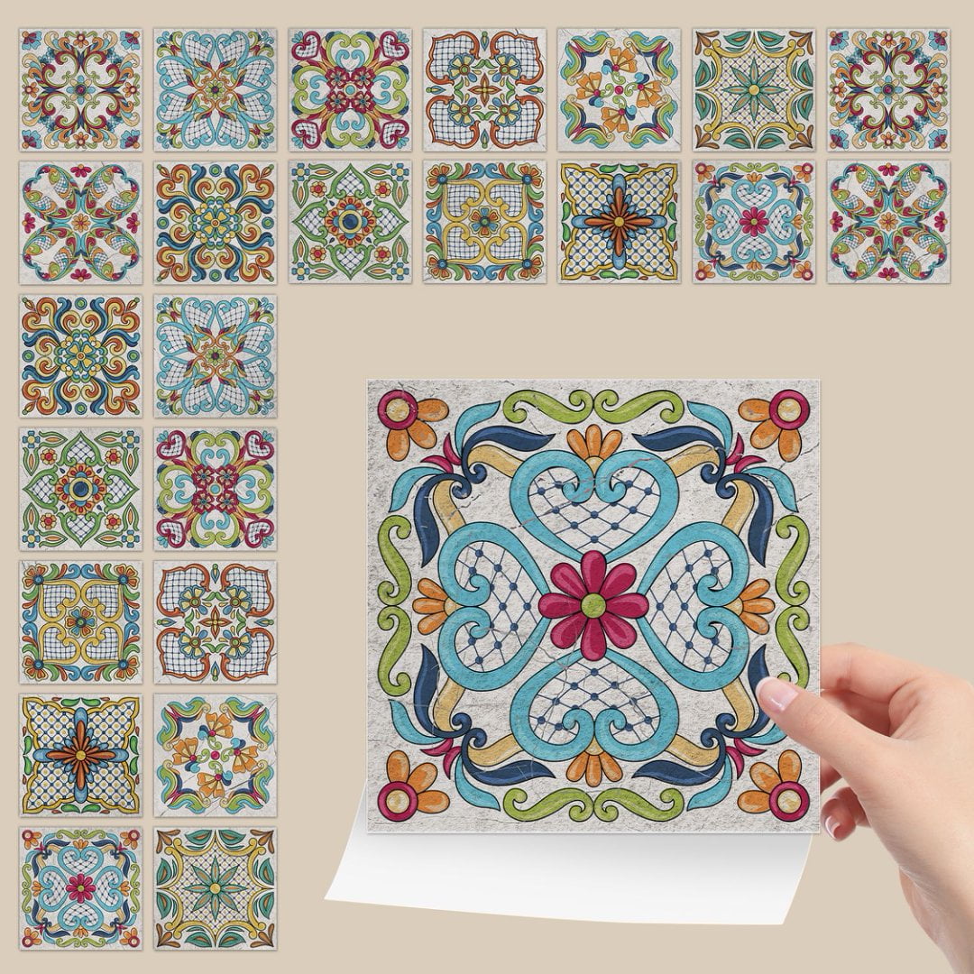 24Pcs Self Adhesive DIY Tiles Wall Stickers 4 x 4in Multicolor Flowers