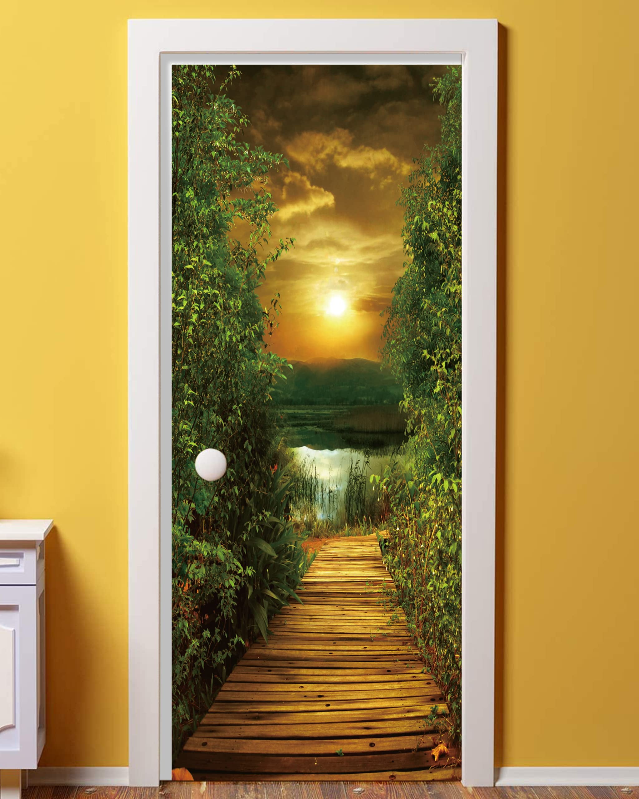 3D Nature Waterfall Door Stickers Fall Wallpaper Mountain River
