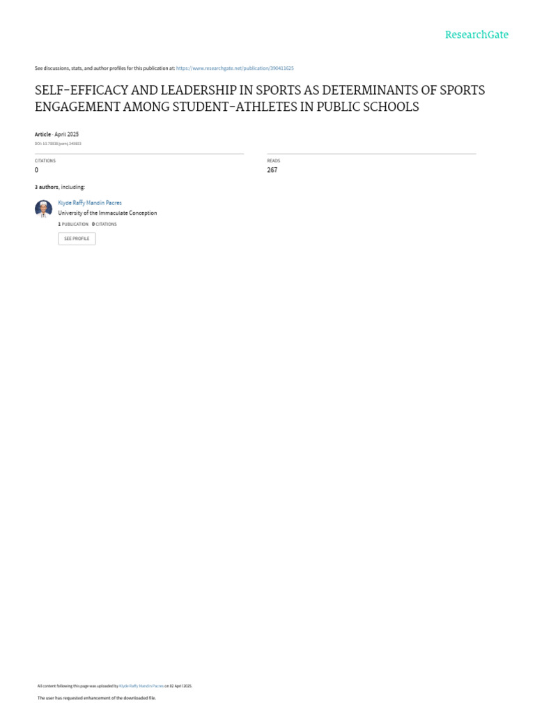 Self EfficacyandLeadershipinSportsasDeterminants (1) PDF Self
