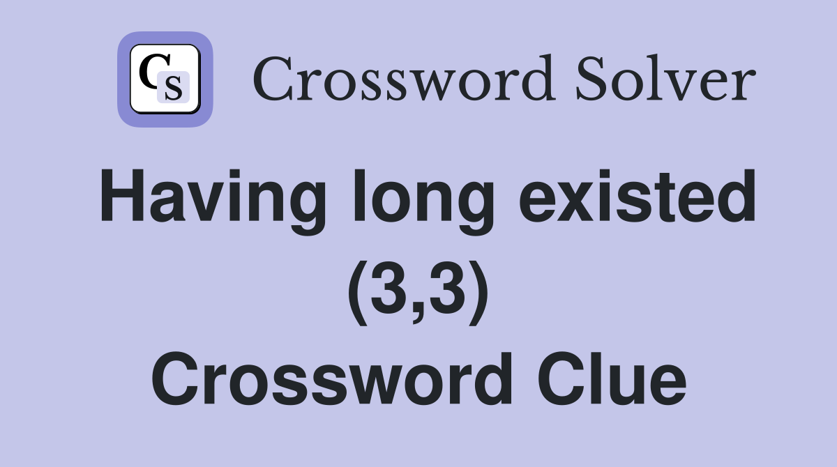 Having long existed (3 3) Crossword Clue Answers Crossword Solver