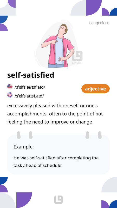 Definition Meaning of Self satisfied Picture Dictionary
