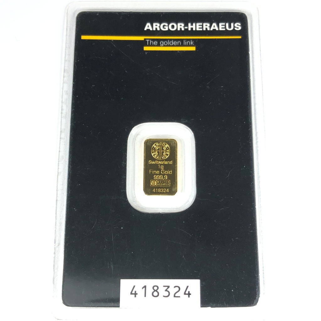1 Gram 9999 Gold Bar*Argor*Heraeus*In Business Care Sized Holder with