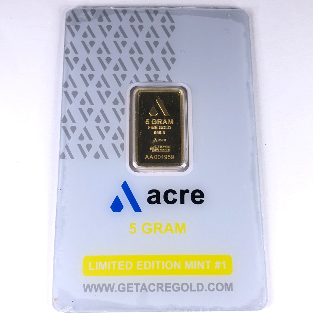 5 Gram 9999 Fine Gold Bar*Acre Gold*In Business Card Sized Holder with