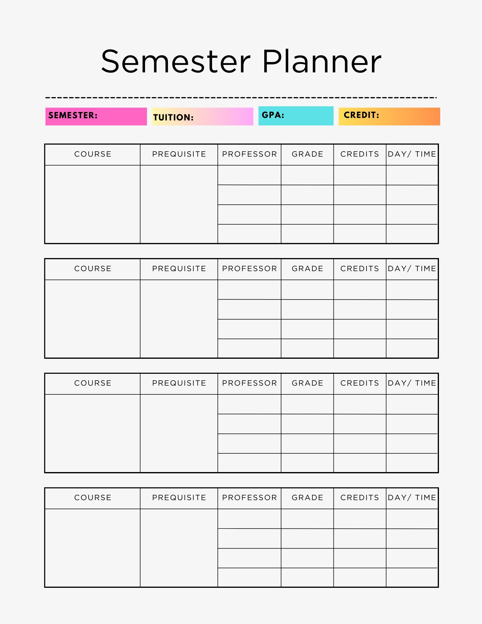 Semester Planner Template prntbl concejomunicipaldechinu gov co