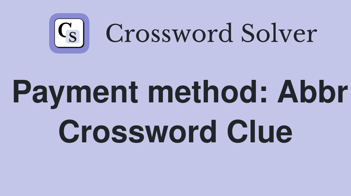 Payment method: Abbr Crossword Clue Answers Crossword Solver