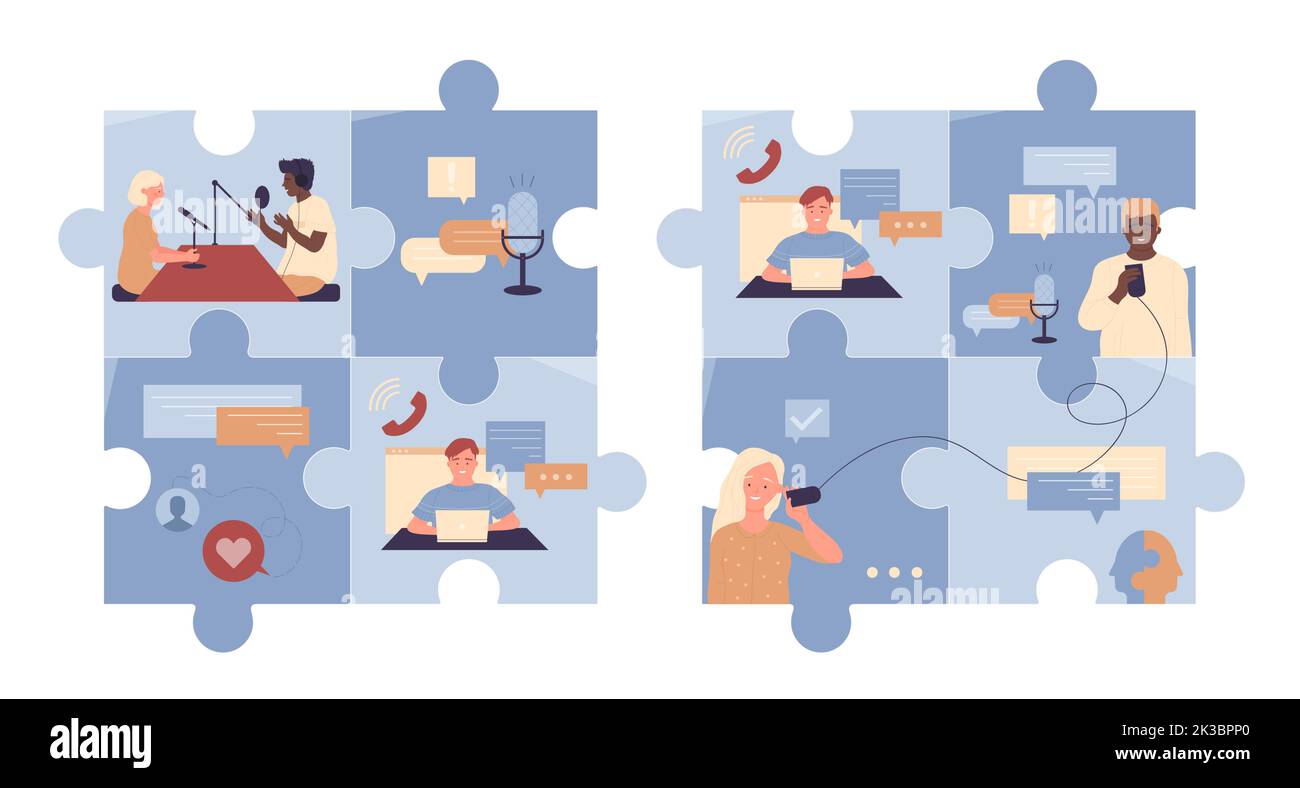 Online conversation set vector illustration Cartoon tiny people talk