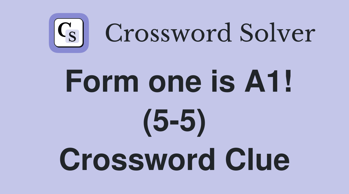 Form one is A1 (5 5) Crossword Clue Answers Crossword Solver