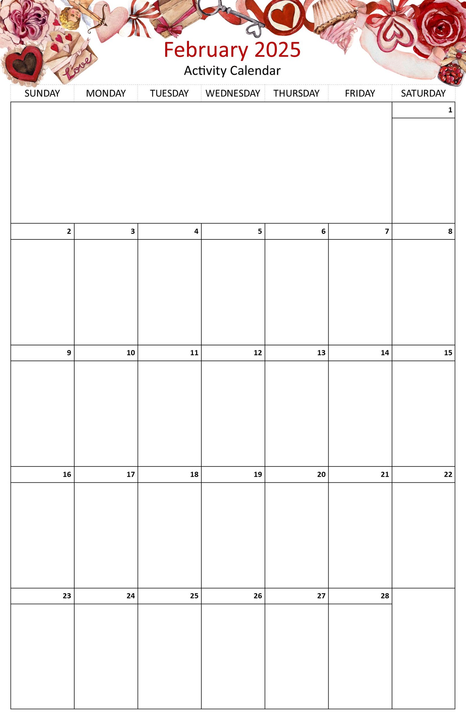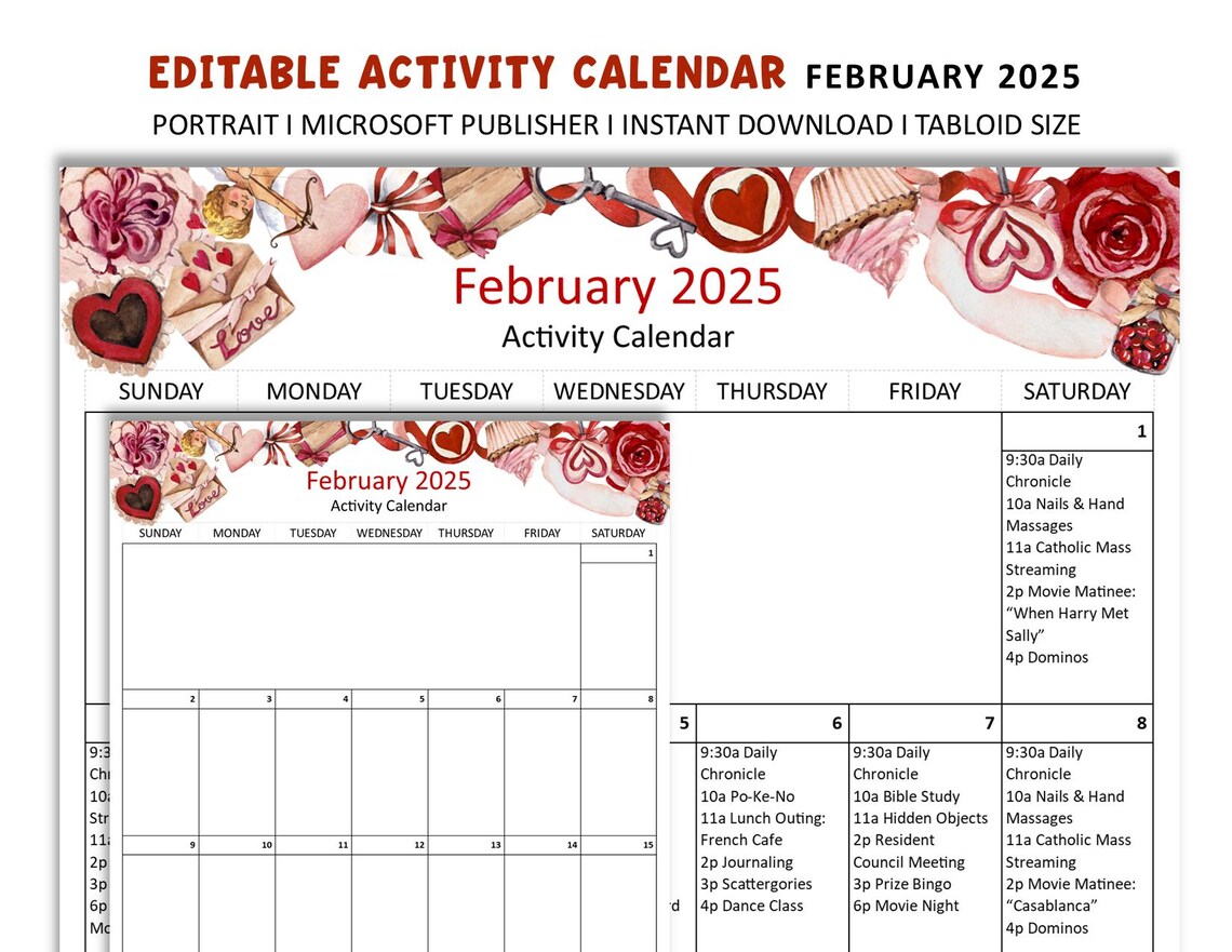 Editable February 2025 Senior Living Activity Calendar (tabloid 11 quot X