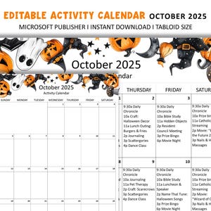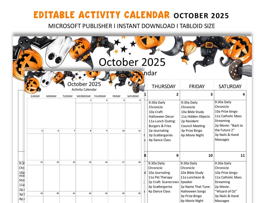 Editable October 2025 Senior Living Activity Calendar (tabloid 11 quot X 17