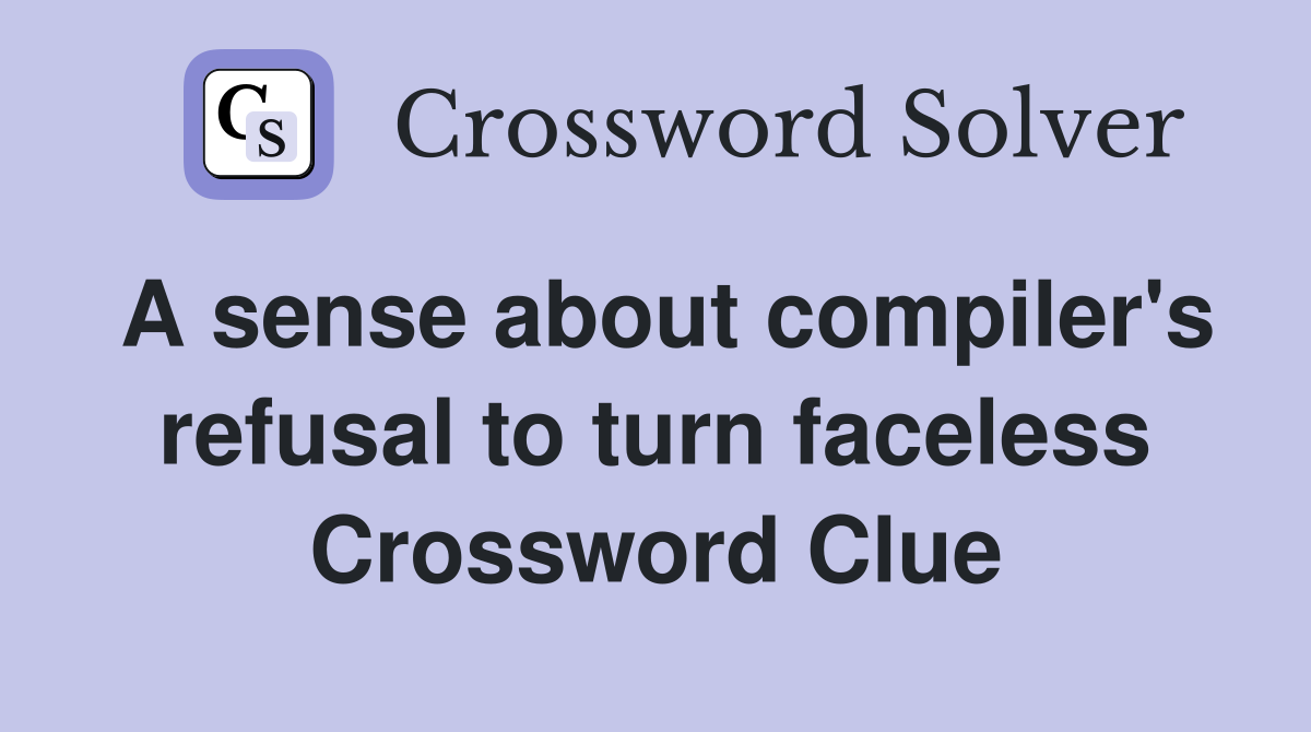 A sense about compiler #39 s refusal to turn faceless Crossword Clue