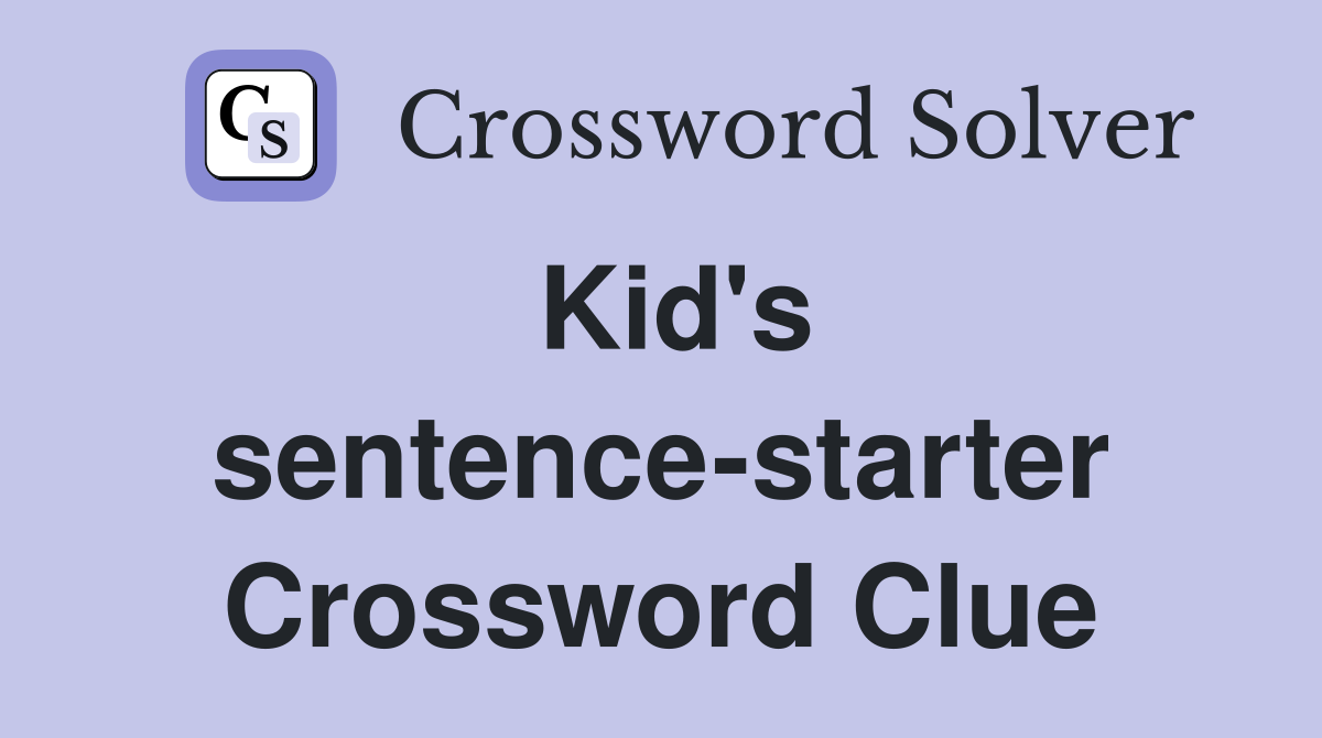 Kid s sentence starter Crossword Clue Answers Crossword Solver