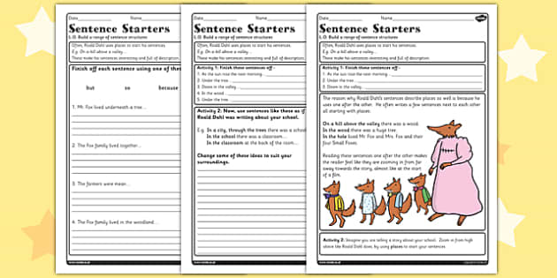 FREE Sentence Starters Worksheet to Support Teaching on Fantastic Mr Fox