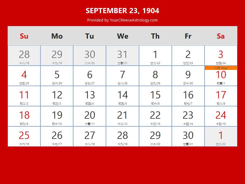 Chinese Calendar Sep 23 1904: Auspicious Things to Do and Hours Bazi