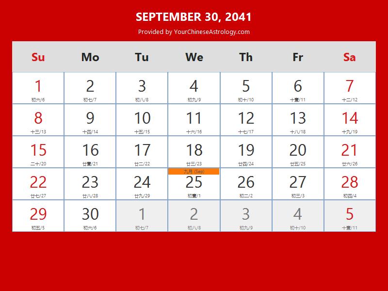 Chinese Calendar Sep 30 2041: Auspicious Things to Do and Hours Bazi