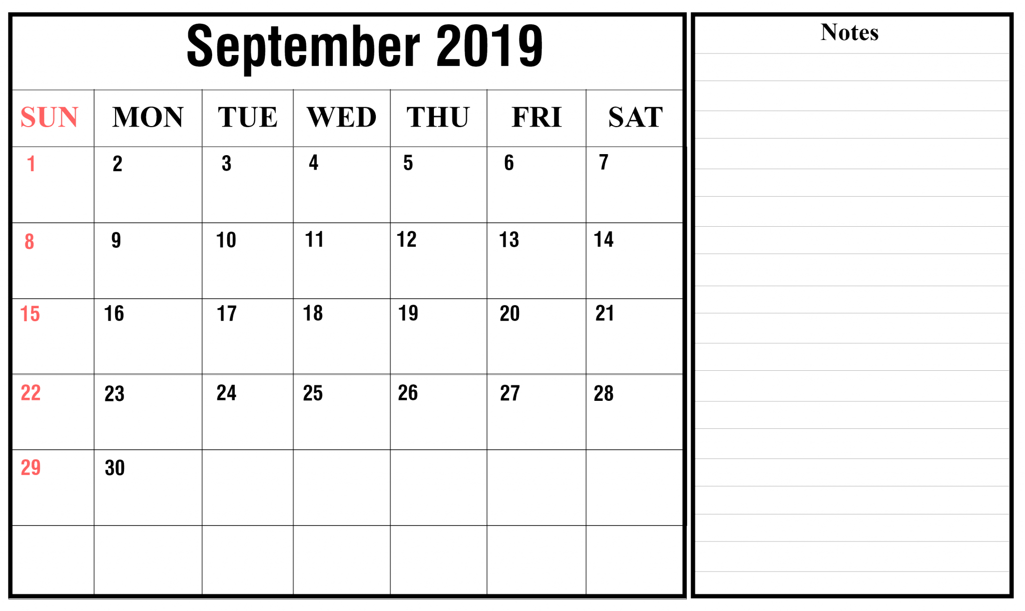 😃 Free}*^ September 2019 Printable Calendar for Word Excel PDF