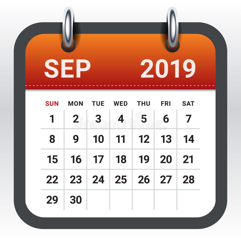 September Year 2019 Monthly Calendar Stock Illustration Download