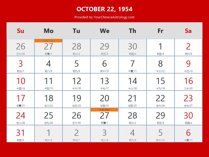 Chinese Calendar Oct 22 1954: Auspicious Things to Do and Hours Bazi