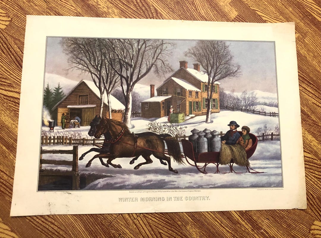 9723 Currier and Ives Winter Morning in the Country Litho Reprint Bythe