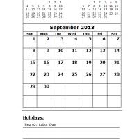 Calendar September 2013 UK Bank Holidays Excel/PDF/Word Templates