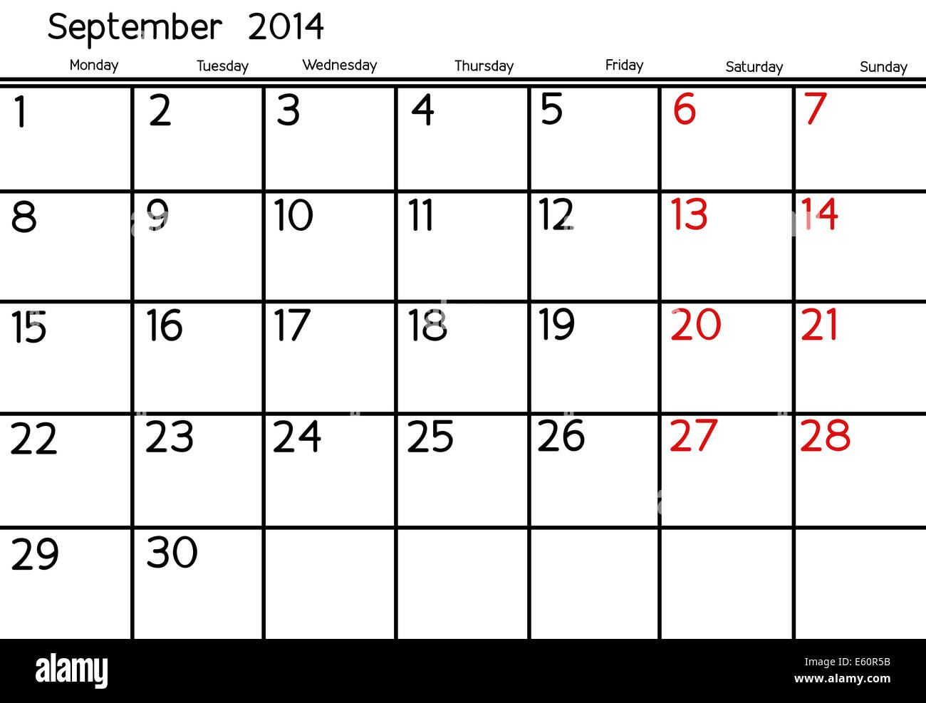 520 September 2014 Calendar Stock Photos Pictures Royalty Free