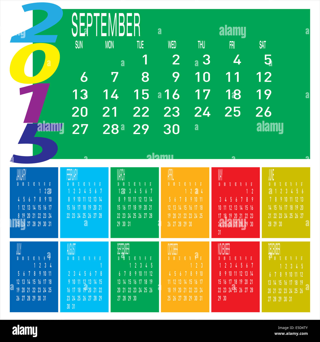 The vector of Year 2015 Colorful Calendar September Stock Photo Alamy
