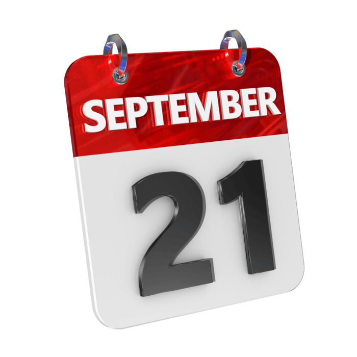 SEPTEMBER 22 A leaf of the flip calendar with the date of SEPTEMBER 22
