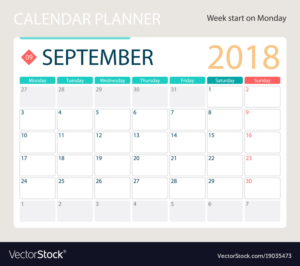 Calendar Sheet September 2018 Stock Vector Illustration of number