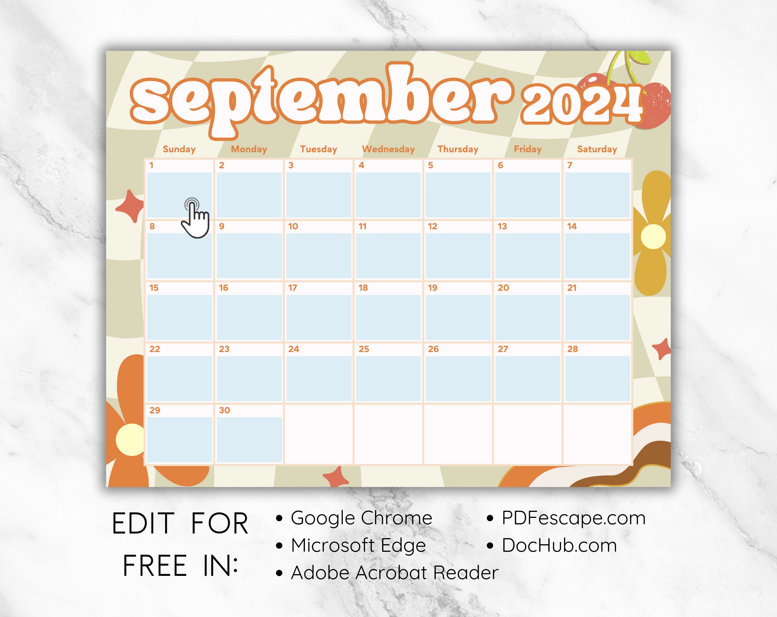 EDITABLE Printable September Calendar 2024 Back to School Etsy