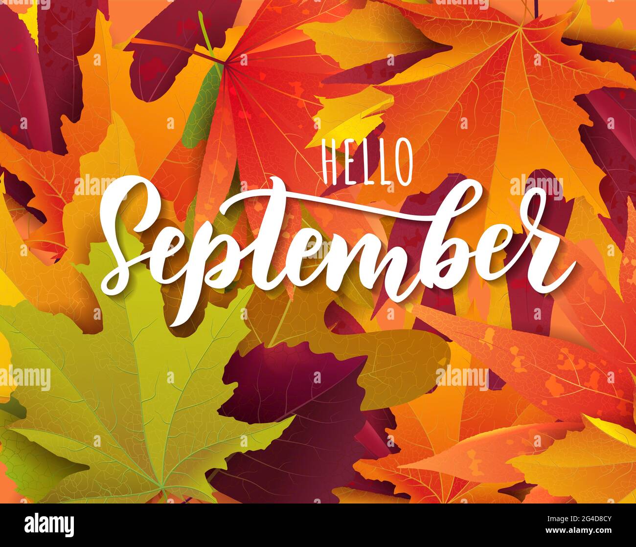 Hello September Autumn Welcome with Colorful Leaves Stock