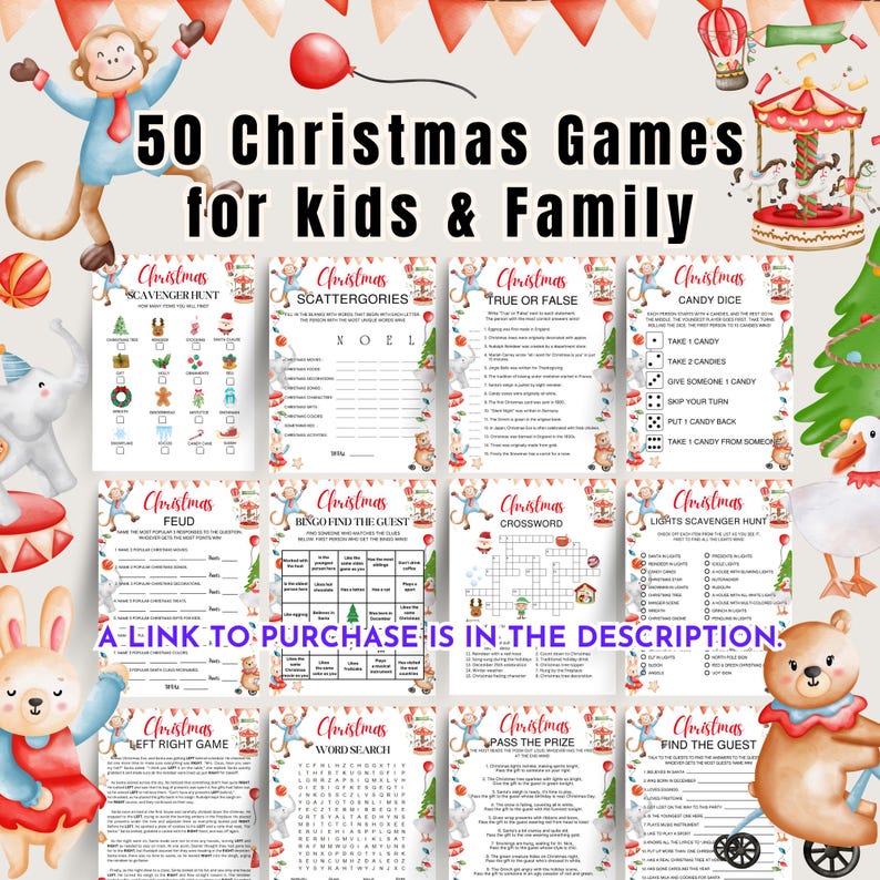 50 Kids Christmas Activity Printable Pages Colorful Holiday Themed