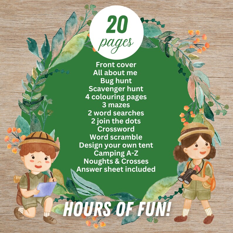 Camping Activity Pack for Kids UK A4 Digital Download Childrens