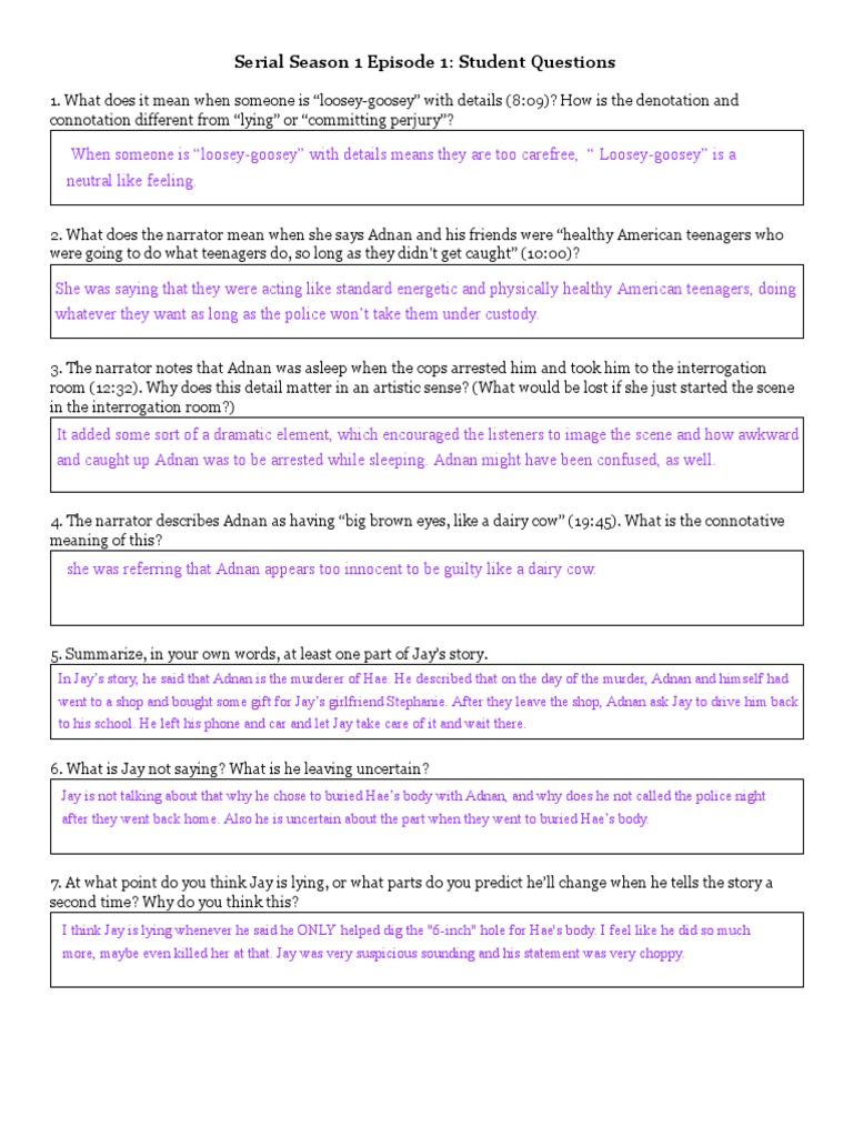 Serial Episode 1 The Alibi Worksheet Answers Pdf Fun Teacher