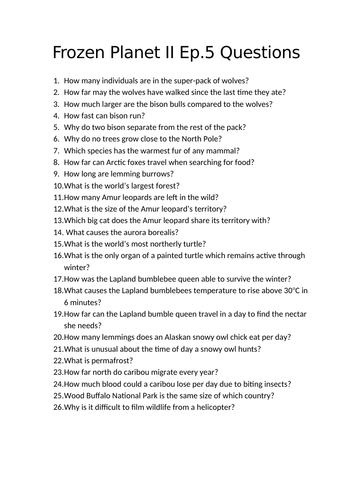 Frozen Planet II Episode 5 Worksheet Teaching Resources