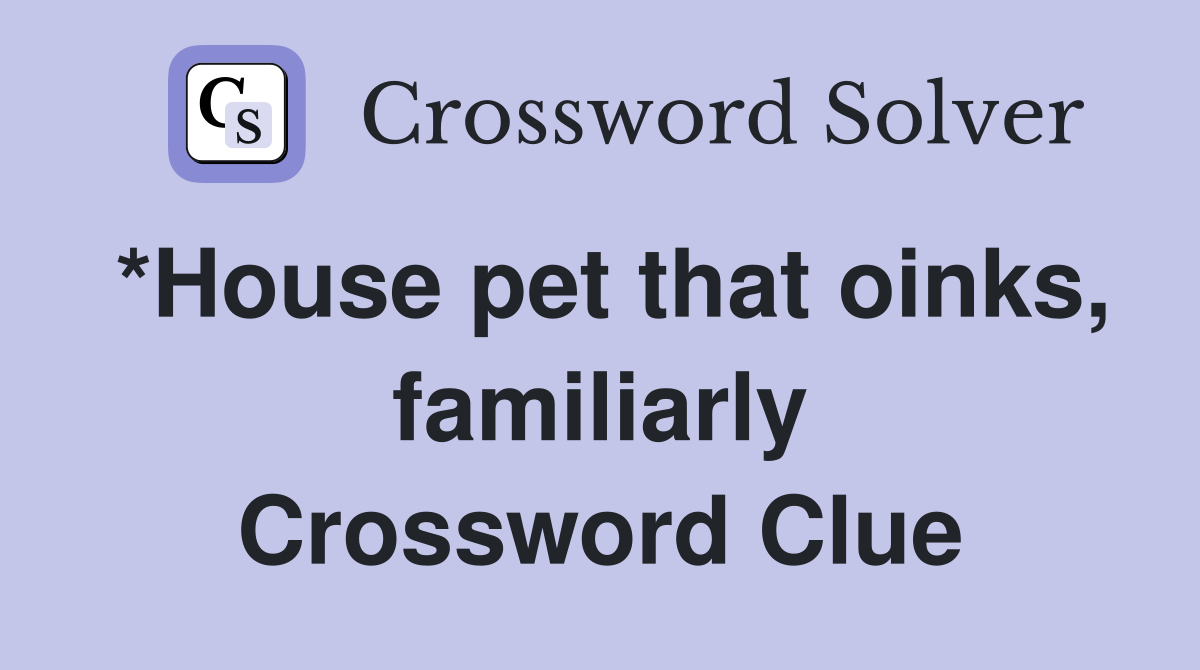 *House pet that oinks familiarly Crossword Clue Answers Crossword