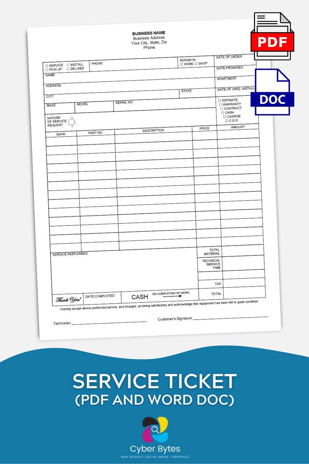TEMPLATE Service Ticket Form Etsy
