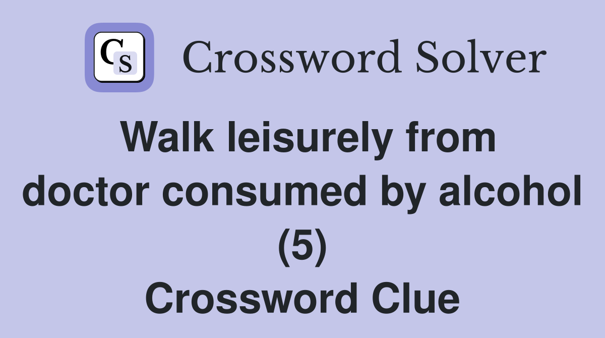 Walk leisurely from doctor consumed by alcohol (5) Crossword Clue