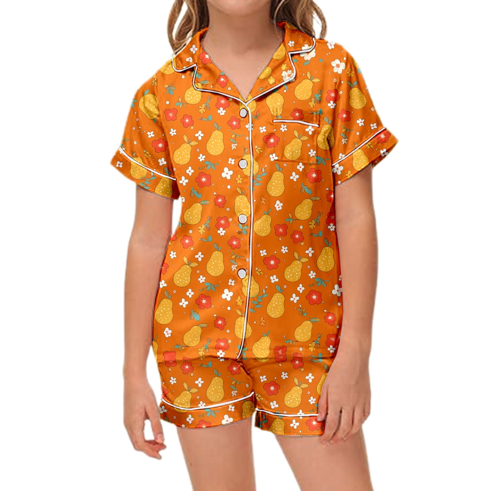 CHENge Kids Halloween Pajamas Satin Pajamas Set Button Sleepwear
