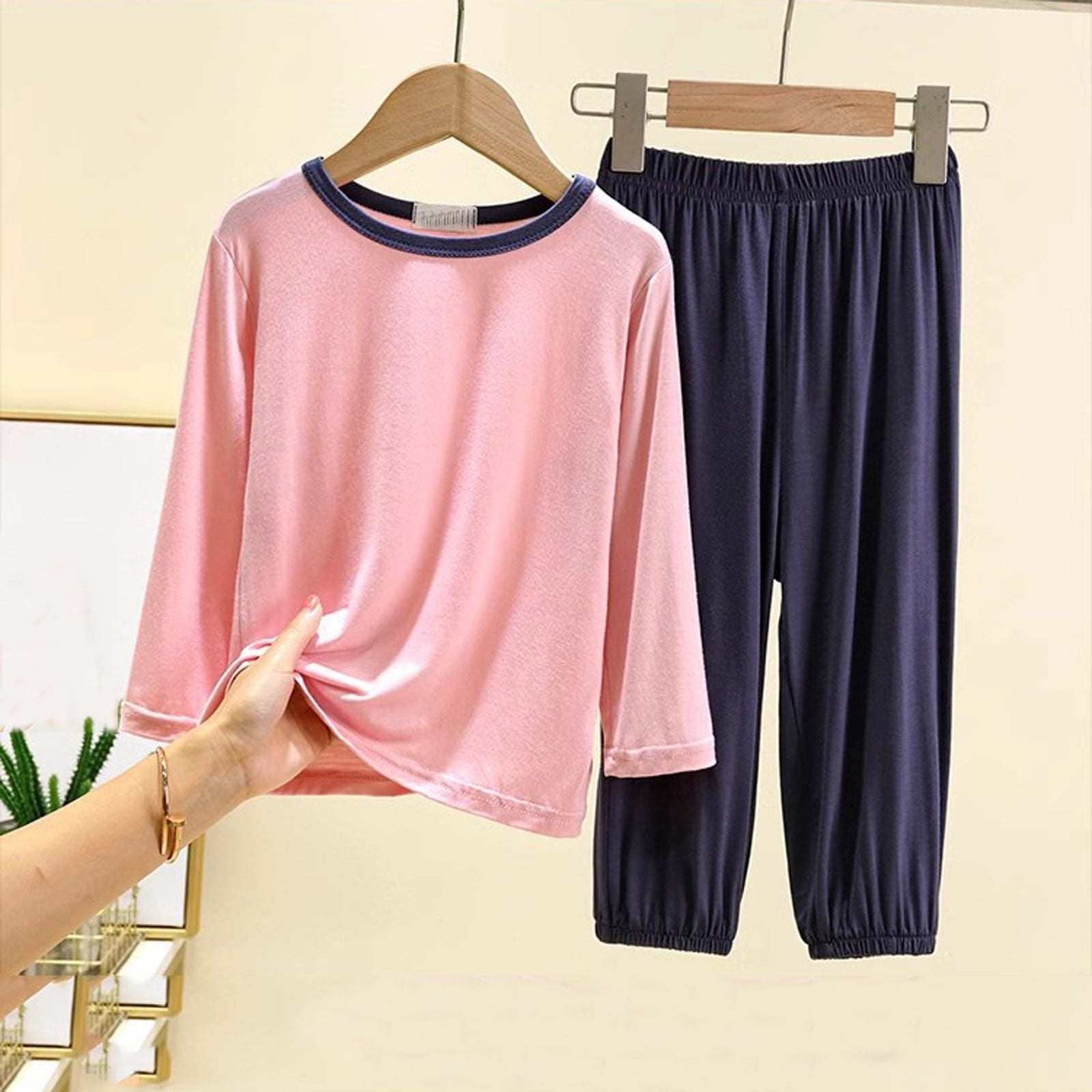 Girl Pajamas Set Pink Long Sleeve Pullover Crewneck Soft Shirts