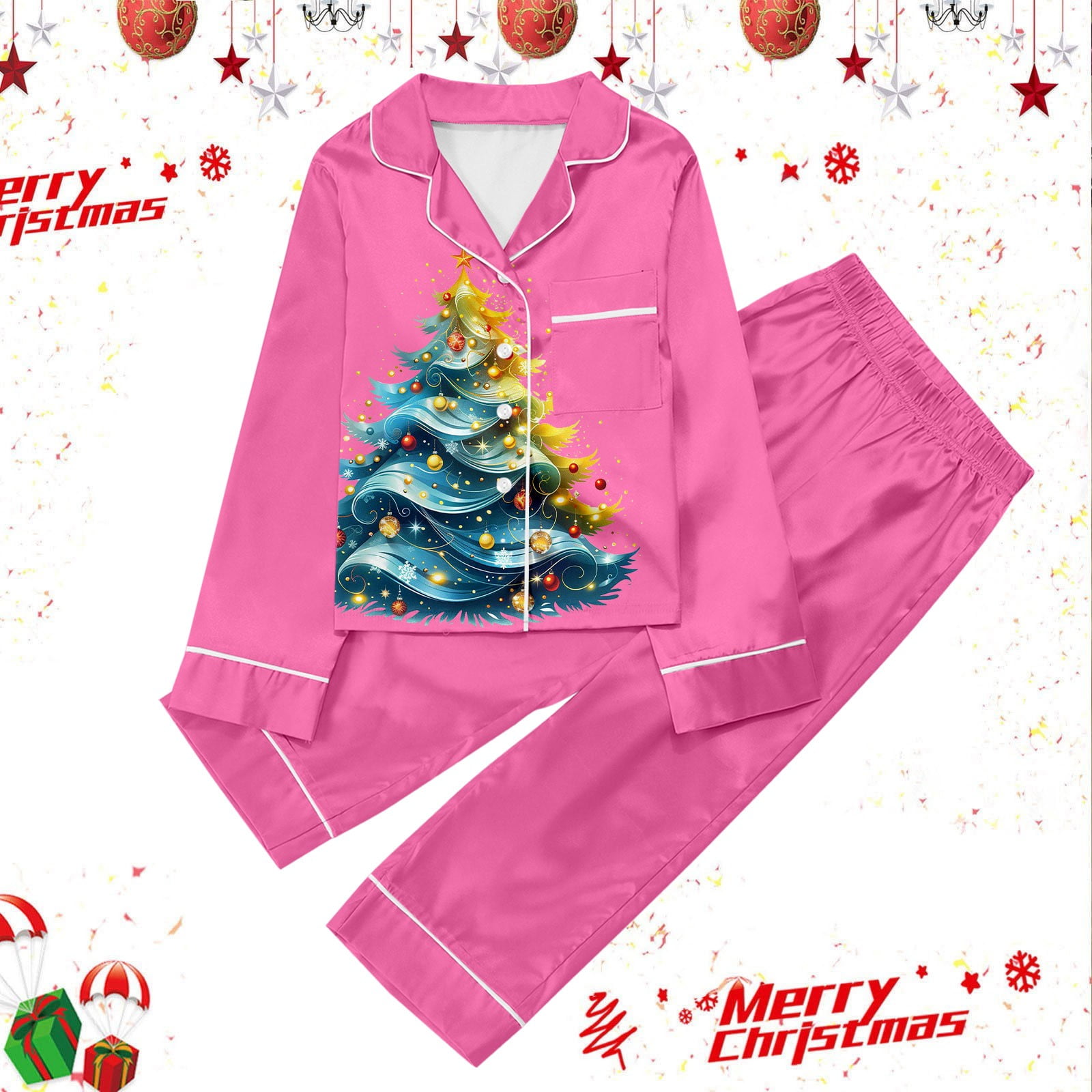 Christmas Pajama Set Silk Satin Pajamas Set Long Sleeve Button Down