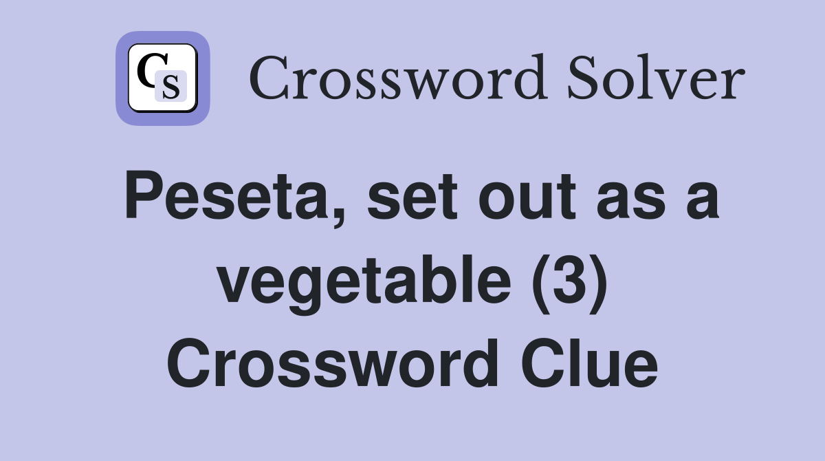 Peseta set out as a vegetable (3) Crossword Clue Answers Crossword