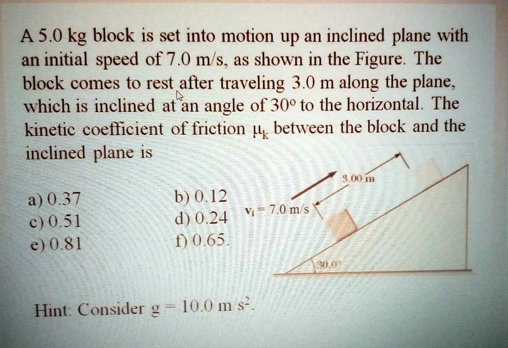 Solved A 5 00 kg block is set into motion up an inclined Chegg com