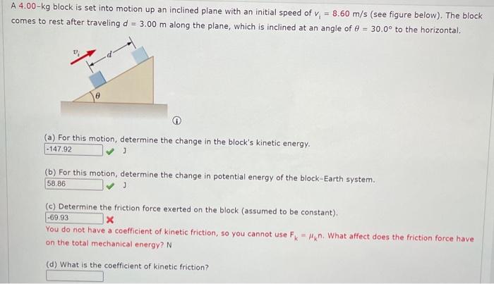 Solved A 4 00−kg block is set into motion up an inclined Chegg com
