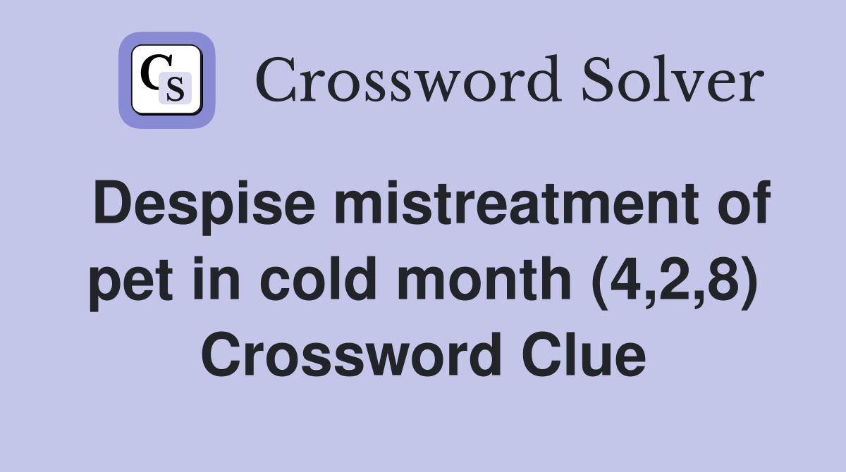 Despise mistreatment of pet in cold month (4 2 8) Crossword Clue