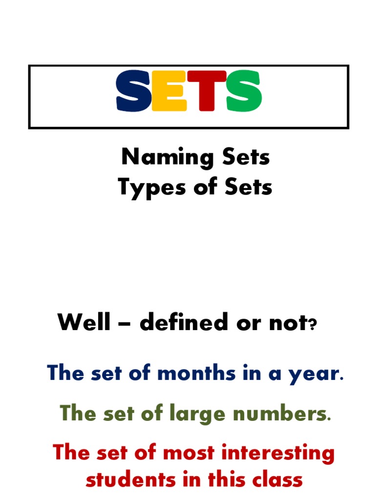 102 Naming Sets and Types of Sets Set (Mathematics) Formalism