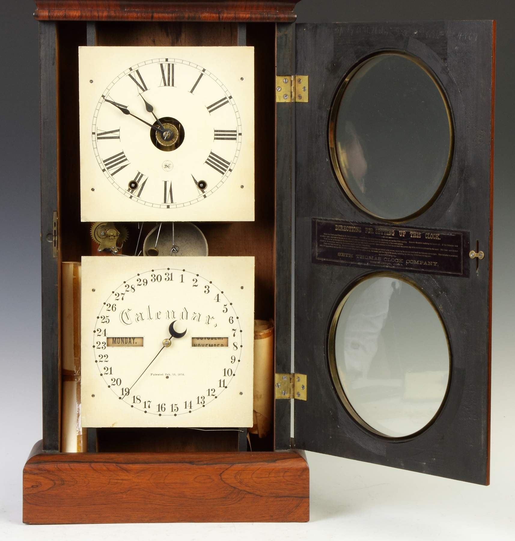 Lot 630: Seth Thomas Double Dial Calendar Clock Case Auctions